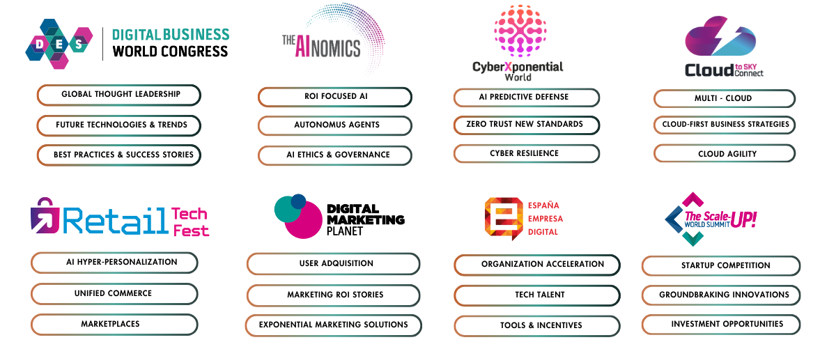 Join us at DES for an incredible journey where the possibilities are endless! This event features cutting-edge conferences at the Digital Business World Congress, an innovative exhibition space, and dynamic network-ing opportunities that you won’t want to miss. We bring together a diverse group of top executives, decision-makers, disruptors, innovators, and visionary entrepreneurs from both the private and public sectors. With participants hailing from over 40 countries, DES creates a unique platform for international knowledge exchange, igniting inspiration and sharing remarkable success stories. Let’s come together to navigate the digital landscape and embark on a transformative journey toward extraordinary achievements!